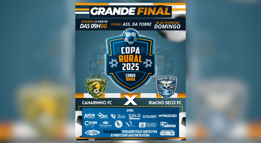 Canarinho FC e Riacho Seco FC disputam o título a partir das 9h, no povoado Assentamento da Torre, após uma competição marcada por integração entre comunidades rurais. A Grande Final da Copa Rural 2025 já está definida e será realizada neste domingo,...