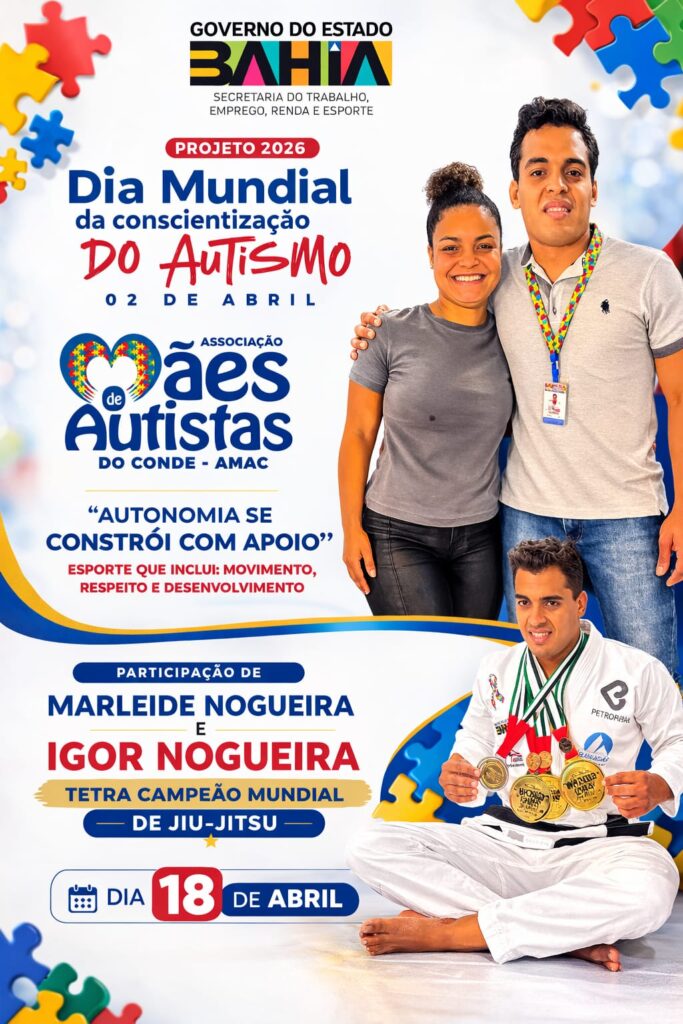 A cidade de Conde será palco de uma ação especial durante a campanha do Abril Azul 2026. No dia 18 de abril, a partir das 9h, o Estádio do Complexo Poliesportivo Lamberto Pinto recebe o evento “Esporte que Inclui :Movimento, Respeito e Desenvolvimento”, promovido pela Associação de Mães de Autistas do Conde (AMAC).