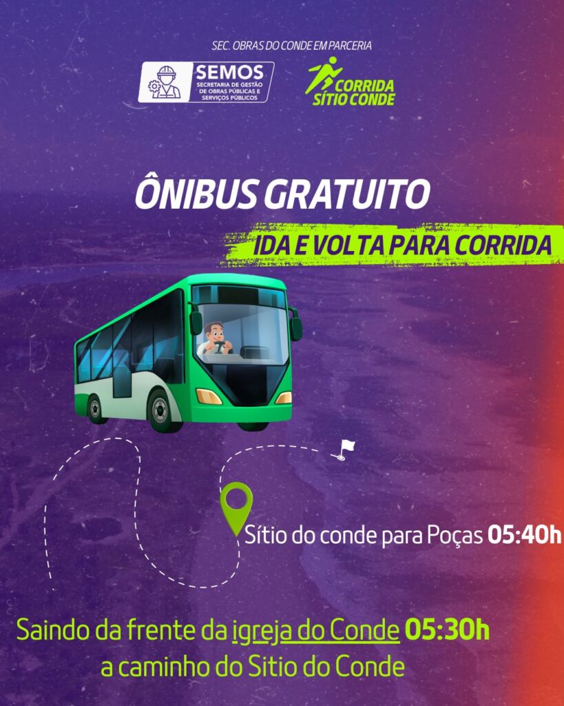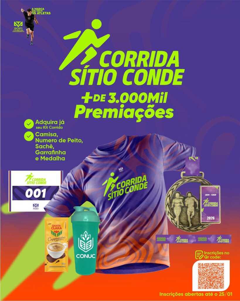 A cidade de Conde já tem um grande evento esportivo confirmado para o início do ano. No dia 25 de janeiro, será realizada a 1ª Edição da Corrida Sítio Conde, uma iniciativa que une esporte, saúde, bem-estar e valorização das belezas naturais da região.